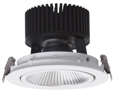 Adjustable recessed LED downlight with a powder coated high quality aluminium body. Tilting and 350° rotation available and anti-glare optical reflector.
