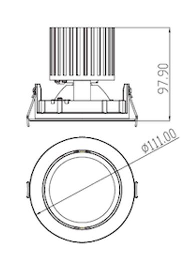 Same as the Basic downlight with a slightly smaller cutout, lower wattage and different beam angle.